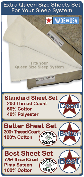 Extra sheets make your easier bedding system even easier. Exact extra/replacement, sheets that will fit any queen sleep system we sell.